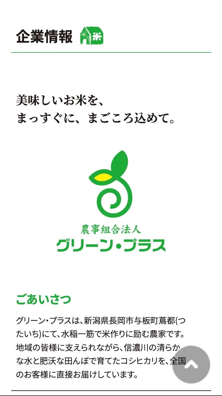 └ トップページ/企業情報/美味しいお米の炊き方/お知らせ/お問合せ/
